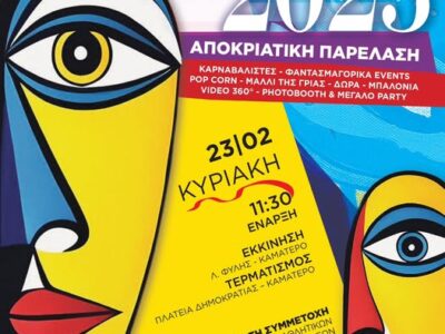 Ενημερώνουμε τους δημότες μας ότι η καρναβαλική παρέλαση στον Δήμο μας θα πραγματοποιηθεί την Κυριακή 23 Φεβρουαρίου και ώρα έναρξης τις 11.30 π.μ. Η αποκριάτικη παρέλαση θα ξεκινήσει από τη Λεωφόρο Φυλής στο Καματερό και ο τερματισμός της παρέλασης θα γίνει στην πλατεία Δημοκρατίας στο Καματερό. Η δήλωση της συμμετοχής των ομάδων που θα πάρουν […]