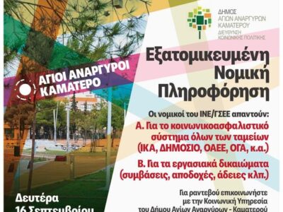 Ενημερώνουμε τους δημότες ότι τα ΚΔΑΠ του Δήμου Αγίων Αναργύρων-Καματερού αλλάζουν το ωράριο …