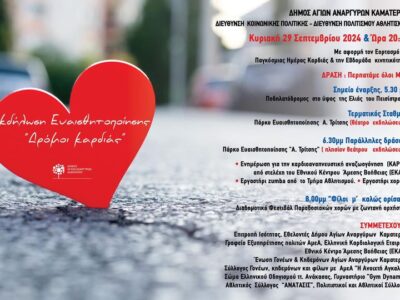 Ενημερώνουμε ότι την Κυριακή 29 Σεπτεμβρίου 2024 με αφορμή τον εορτασμό της Παγκόσμιας Ημέρας Καρδιάς…