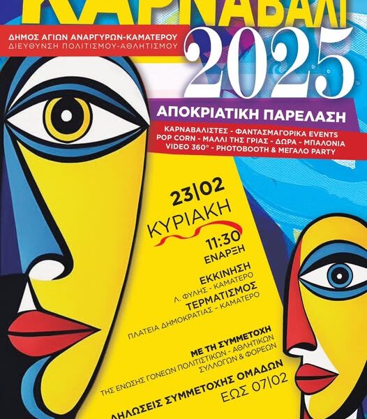 Ενημερώνουμε τους δημότες μας ότι η καρναβαλική παρέλαση στον Δήμο μας θα πραγματοποιηθεί την Κυριακή 23 Φεβρουαρίου και ώρα έναρξης τις 11.30 π.μ.